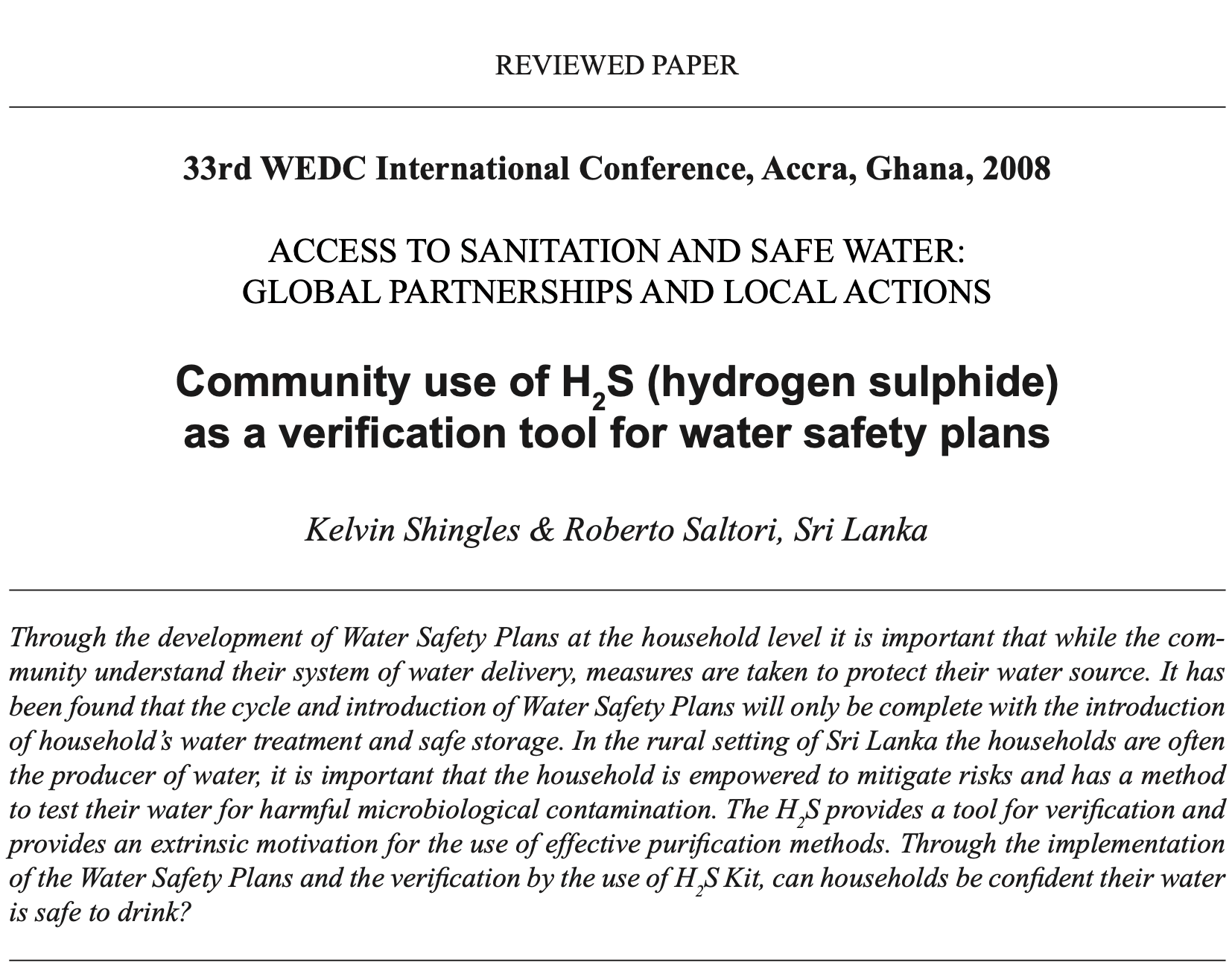 Community use of H2S (Hydrogen Sulphide) as a verification tool for Water Safety Plans
